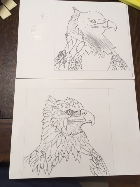 These were harder to do and took some going back to step 4 a bit—but with the original photo. Plus, guessing on our part for things like feather location/design. If we do this again, we’ll get more of those done in step 2. - Go Over Pencil Lines in Pen